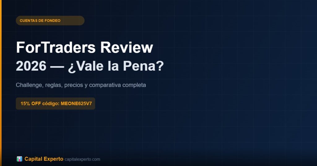 Review completa de ForTraders 2026: challenge de fondeo, reglas, precios, comparativa con FTMO y consejos para aprobar. 15% OFF con código MEONE625V7.