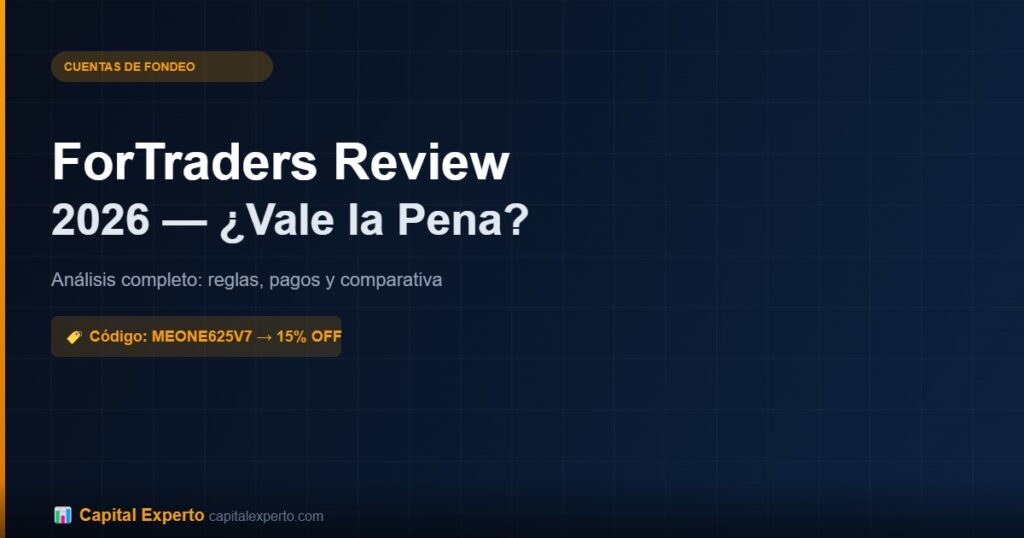 Descubrí si ForTraders vale la pena en 2026. Análisis completo: reglas del challenge, pagos, comparativa con FTMO y código de descuento exclusivo MEONE625V7 (15% OFF).